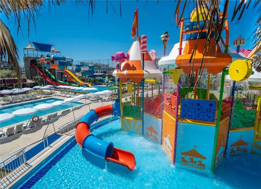 De accommodatie bestaat uit verschillende gebouwen, receptie, lobby met zitjes, gratis wifi in de lobby, liften, televisieruimte, verscheidene bars, buffetrestaurant, à la carte restaurants Mediterraan, Chinees en Turks, buitenbad, 4 waterglijbanen, kinderbad, binnenbad, zonneterras, ligbedden en parasols tevens aan het strand, badhanddoekservice, disco, animatieteam.