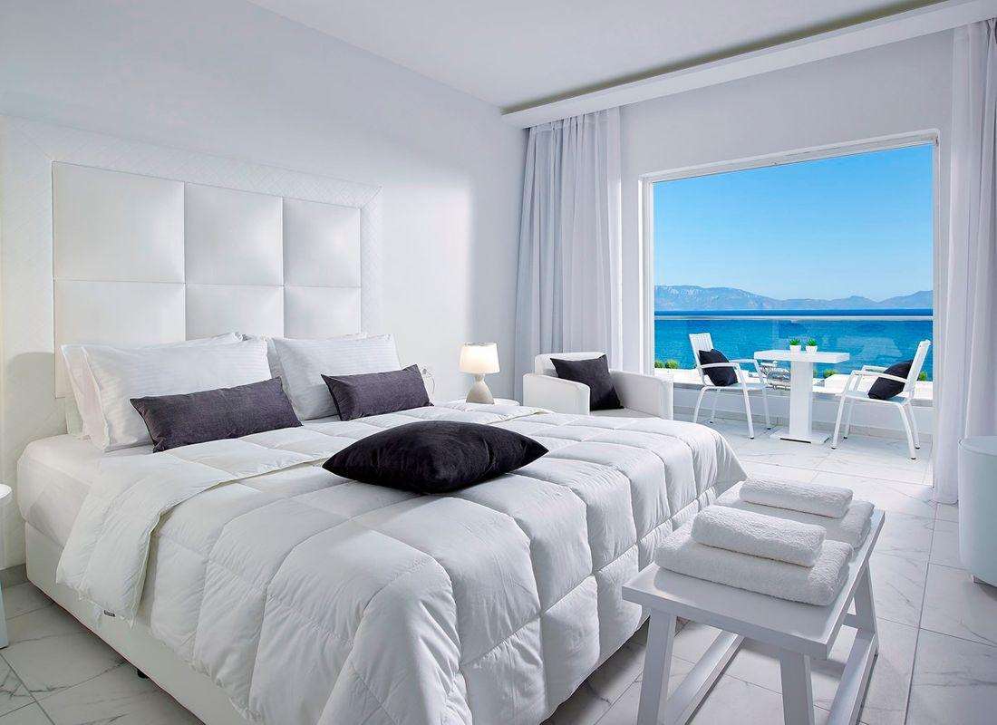 -> Het 5* Dimitra Beach Hotel & Suites is een sfeervol en uitstekend complex. De kamers zijn in 2020 geheel gerenoveerd. Hier is het heerlijk genieten van een fantastische Griekse vakantie. Het hotel ligt direct aan het kiezelstrand. Kos-stad ligt op circa 7 kilometer afstand. De luchthaven van Kos ligt op circa 30 kilometer afstand.